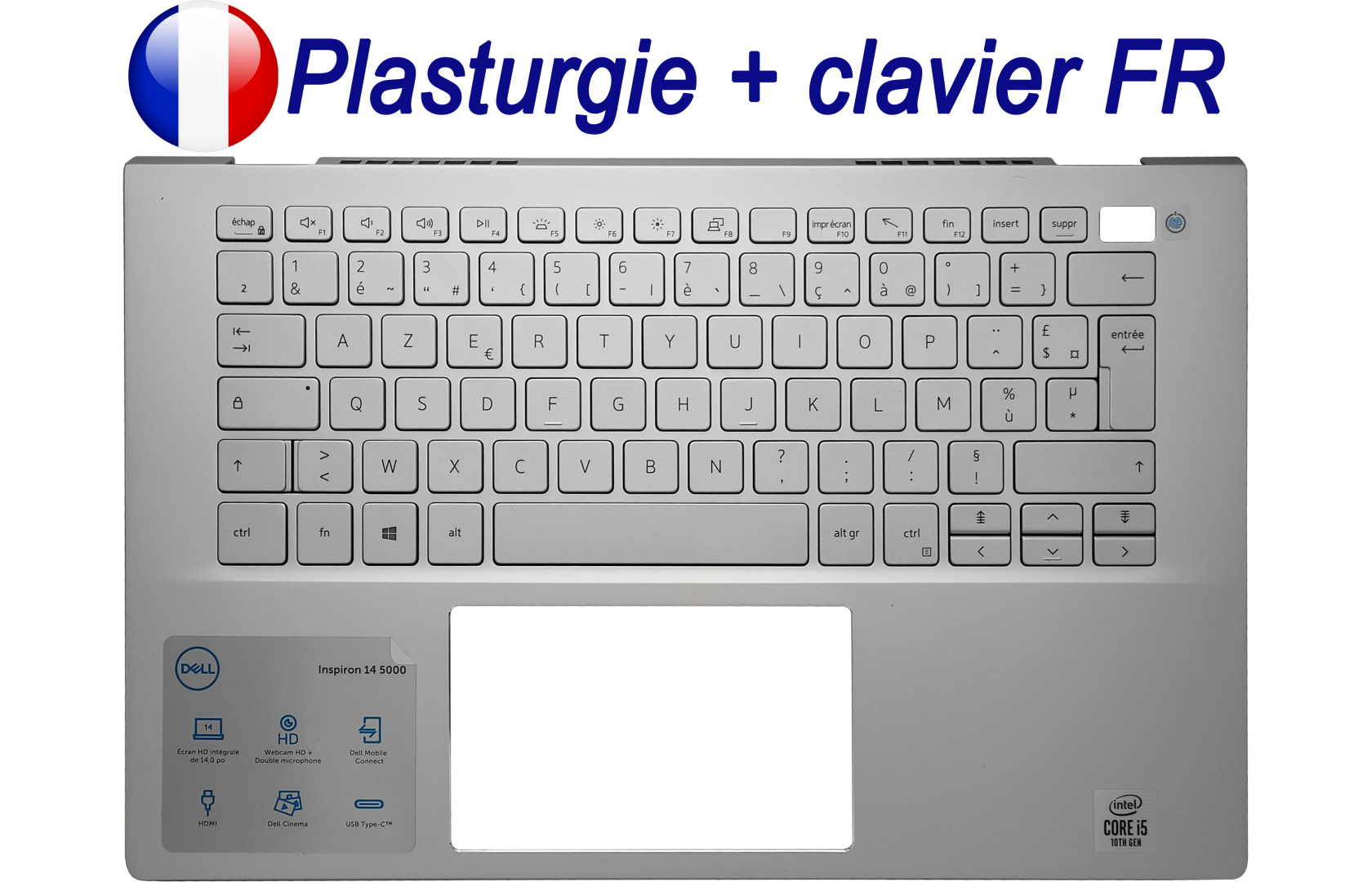 Plasturgie argentée avec clavier pour ordinateur portable de marque DELL, Français (AZERTY) ; extraite d'ordinateur portable NEUF