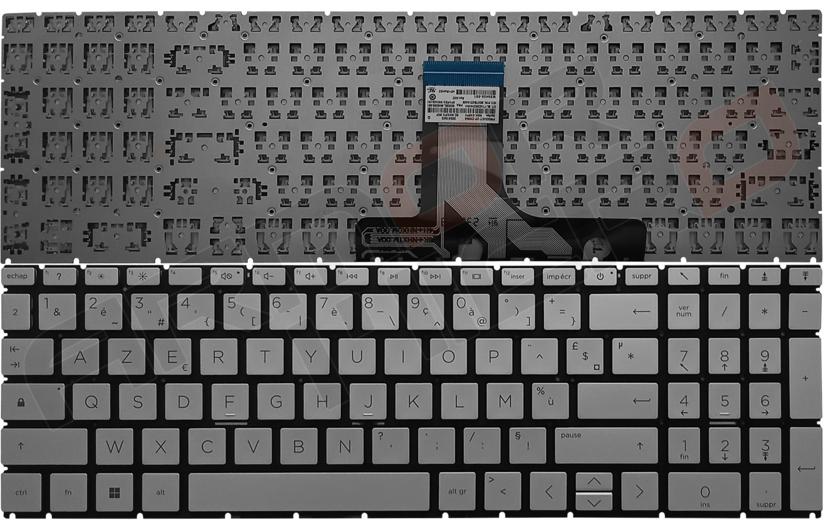 Clavier argenté pour ordinateur portable de marque HP, Français (AZERTY).