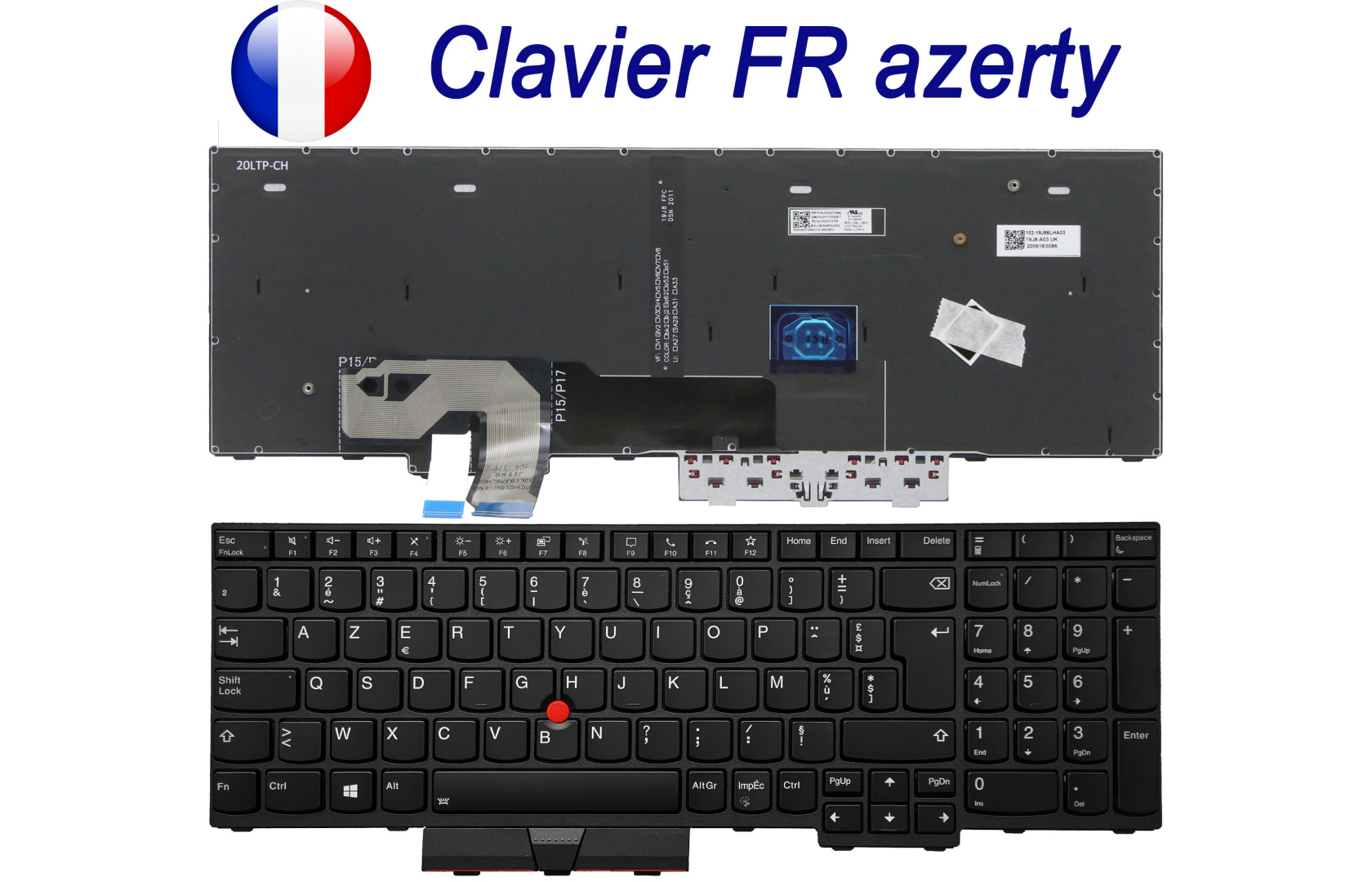Rétro-éclairage inclus - version initiale belge transformée en version AZERTY française. P/N communiqués à titre indicatif.