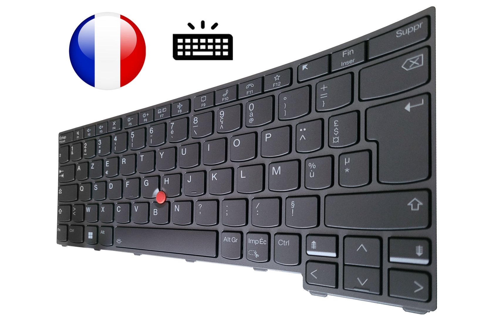 Clavier gris d'ordinateur portable de marque Lenovo, Français (AZERTY).